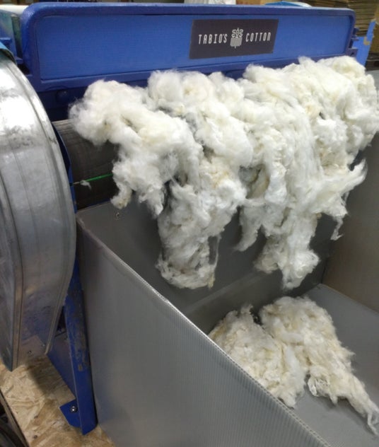 綿花から繊維と種子を分ける工程で、紡績などの前段階として欠かせない作業です。昔は「綿繰り機(わたくりき)」という道具を使用して手作業で行われていました。