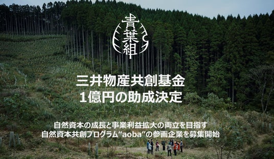 株式会社GREEN FORESTERS(以下「青葉組」)は、この度、三井物産株式会社(以下「三井物産」)が設置・運営する三井物産共創基金の第4号助成案件として採択され、1億円の助成を受けることが決定しました。本採択を機に、青葉組は三井物産と森林集約等の業務面でも連携を強化し、林業が自然資本を増やしていく「林業の自然資本産業化」モデルの構築と普及を加速します。