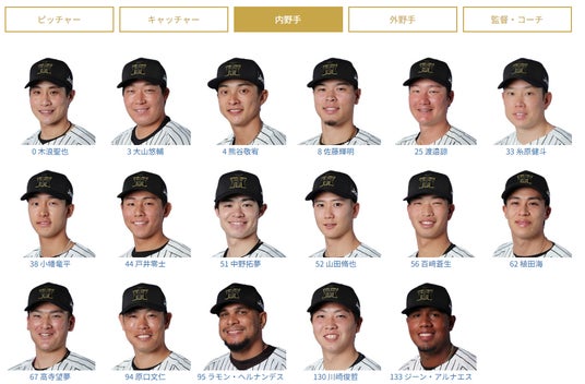 選手のグッズはポジション別から検索可能!監督、コーチ、育成選手まで100人以上の推しのグッズを見つけて下さい。
