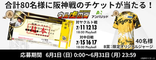 ペア観戦チケットは当選者にご注文時にご登録のメールでお知らせします。ウル虎の夏2025限定オリジナルジャージの当選は発送をもって発表に代えさせていただきます。