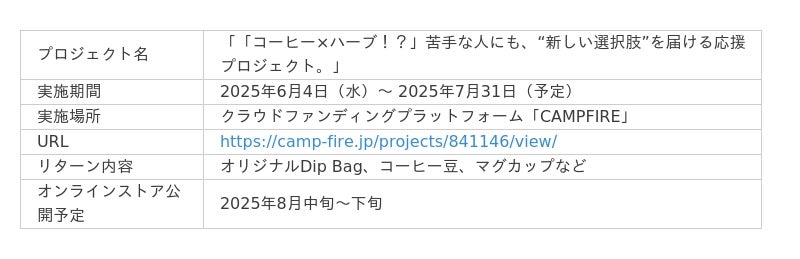 コーヒーにハーブやスパイスをブレンドする、新しい体験を届ける新ブランド「+1COFFEE(プラスワンコーヒー)」が、2025年6月4日よりクラウドファンディングを開始しました(CAMPFIREにて)。 ”コーヒーが苦手な人も、思わず飲みたくなる” そんな選択肢をつくるプロジェクトです。