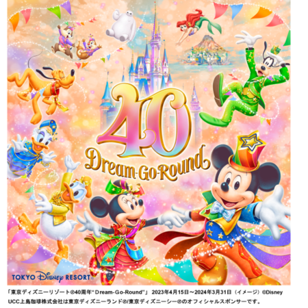 2023年5月に創業90周年を迎えるUCCグループは、90周年の感謝を込めてUCC上島珈琲株式会社がオフィシャルスポンサーを務め、今年開園40周年を迎える東京ディズニーランド(R)の夜間完全貸切「プライベート・イブニング・パーティー」に7,000名様をご招待するなど、総計9,000名様に素敵な賞品が当たる「UCC 90周年ANNIVERSARY 2023 キャンペーン」を2023年4月3日(月)よりスタートします。