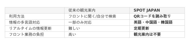 【従来の観光案内と「SPOT JAPAN」の違い】