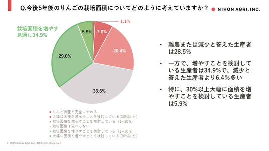 日本の農産物の生産から販売まで一気通貫で展開し、新たな産業構造を創出する株式会社日本農業(本社:東京都品川区、代表取締役CEO:内藤祥平、以下「日本農業」)は、青森県内のりんご生産者を対象に実施したりんご生産に関するアンケートをもとに調査・分析し、結果を公開いたしました。