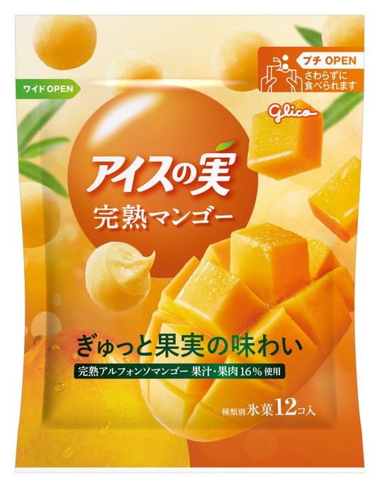 1986年の発売以降、長く愛され続けている「アイスの実」は、「ぎゅっと凝縮した素材の濃い味わいで、手軽にリフレッシュしていただきたい」という思いで、商品や施策を展開しています。今回は、旬の完熟アルフォンソマンゴーを使用した「アイスの実<完熟マンゴー>」を発売します。