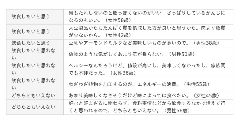 プラントベースフードの飲食状況や意向、魅力や気になることなどについて聞いています。調査結果をお知らせいたします。