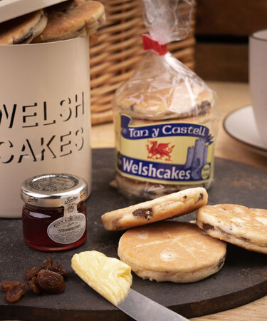グリドルという鉄板で美味しく焼かれる素朴な焼き菓子。中はしっとりほくほく、外側はサクサクしたパンケーキ、スコーン、ショートブレッドの食感を併せ持つ独特な優しい甘さのお茶菓子。タンカステル社はウェールズで最も知られているウェルシュケーキの作り手。昔ながらの製法を使って、愛情込めて作っています。