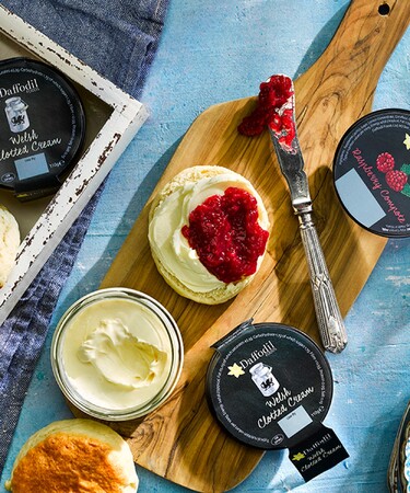 美しいリーン半島をもとに、北ウェールズアバソチとプヘリ付近のスノドニア山麓で作られているウェルッシュクロテッドクリーム。ウェールズ産の高品質の生乳のみを使って作ったクリームは、滑らかで香り高く、白いクロテッドクリームと呼ばれています。ミルク感たっぷりで味わい深く、ジャムやスコーンのおいしさをさらに引き立てます。