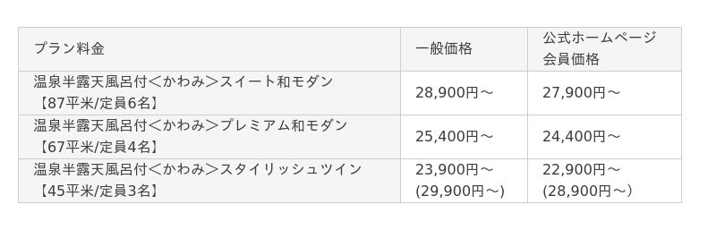 6月は梅雨時期となり、宿でのおこもりステイがしたくなる時期。部屋に滞在したまま自由気ままに客室温泉で湯あみ三昧ができるように、2025年6月限定で「素泊まり(食事なし)×温泉半露天風呂付客室<かわみ>(2023年リニューアル)」を体験できるプランをご用意いたしました。
