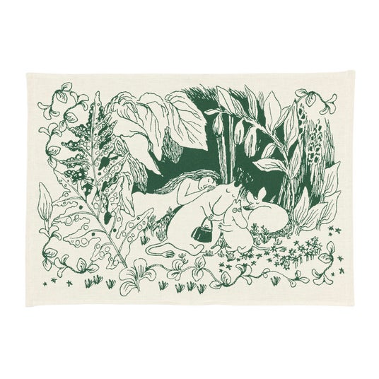 今年の「ムーミンの日」マグには、『小さなトロールと大きな洪水』の中から、ムーミンママがムーミントロールと小さな生き物、青い髪の少女チューリッパ、そして自分たちのためにシダのしげみの中に心地よい寝床をつくり、皆で寄り添って眠るという、愛らしいシーンが描かれています。森の中の不思議な音に包まれながら、ムーミントロールだけが少し眠りにつくのに時間がかかっている様子も表現されています。トーベ・ヤンソンの白黒の原画を忠実に再解釈しながらも、魅力的な色彩を加え、絵に新たな命を吹き込んでいるのはムーミン アラビアのデザインチームのパルバティ・ピライです。パルバティ・ピライは、「どんな大きな旅でも、これからの困難に備えて力を蓄える時間が必要です。この旅の仲間たちも、ムーミンパパを見つけ出し、大洪水から逃れるために、ひとときの休息を取っているのです。」と語りました。