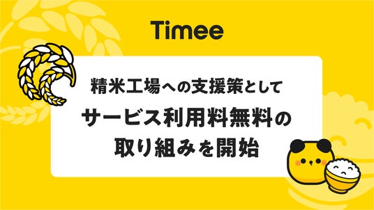 株式会社タイミー(所在地:東京都港区、代表取締役:小川 嶺)は、全国の精米工場への支援策としてスキマバイトサービス「タイミー」のサービス利用料を一定期間無料とする取り組みを開始いたします。