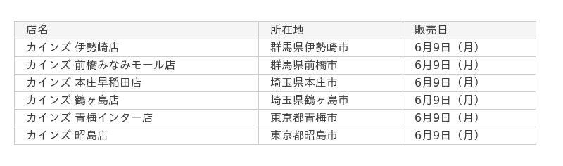 販売店舗や時期等の詳細につきましては、決定次第、企業サイトをはじめ、カインズオンラインショップ、カインズアプリ等でお知らせさせていただきます。