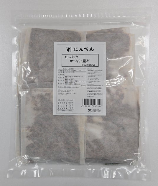 国内製造のかつお節、北海道産の昆布を使用しただしパックです。
