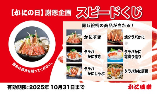 かにの日企画は【空くじなしのスピードくじ】を開催いたします!!