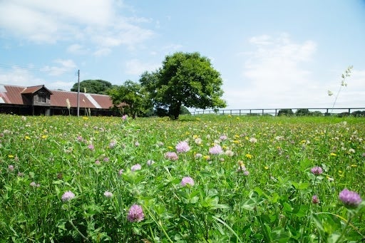 1917年(大正6年)にサラブレッドの生産牧場として設立された「東北牧場」は、1987年よりサラブレッドの堆肥を活用した循環型農業に取り組んでいます。総面積約100ヘクタールの一部、約10ヘクタールで無農薬・無化学肥料の野菜やハーブ、米を栽培。養鶏場では平飼いブランド卵「青玉」と「赤玉」を採卵し、鶏たちの主食となるデントコーンも無農薬・無化学肥料で自家栽培しています。