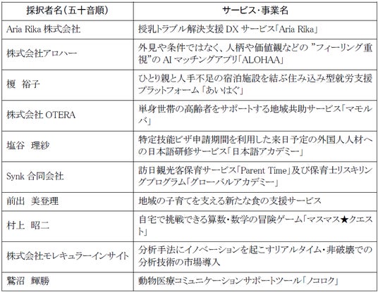 ※ベンチャー企業は企業名、起業準備者は氏名を記載しています。