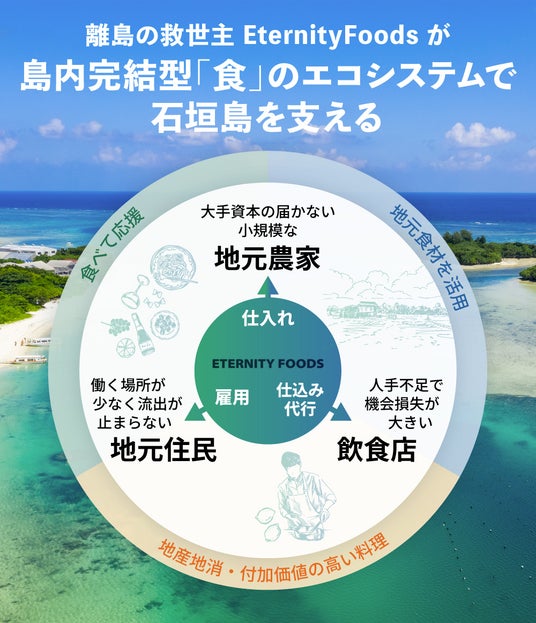 株式会社EternityFoodsは「石垣島の食材で世界を驚かせよう」をコンセプトに、「お客様、地域、自社、従業員の四方が利益を得て、永続的に発展・成長できる企業」を目指しています。特に、地域の食を通じて社会課題を解決し、持続可能な地域経済の実現に貢献することに熱い想いを込めています。