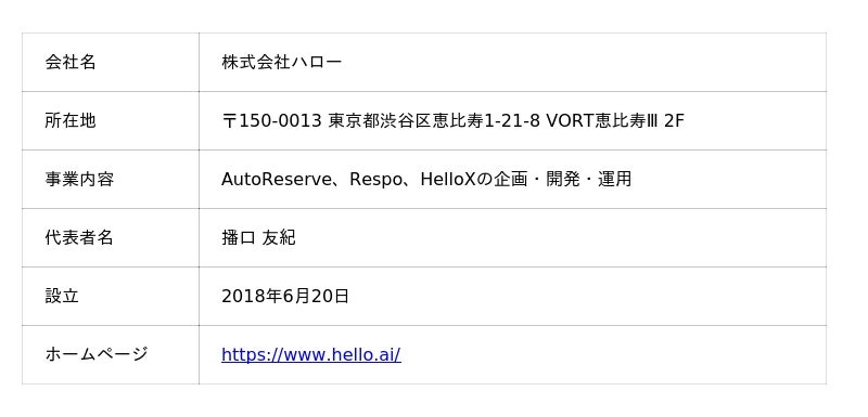 株式会社ハロー(本社:東京都渋谷区恵比寿1-21-8 VORT恵比寿III 2F、代表取締役:播口友紀、以降「当社」)が運営するAIによるレストラン予約サービス「AutoReserve」において、台湾と香港における登録者数がそれぞれ10万人を突破したことをお知らせいたします。