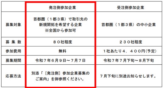 なお、受注側の参加企業の募集については、7月下旬に別途お知らせします。