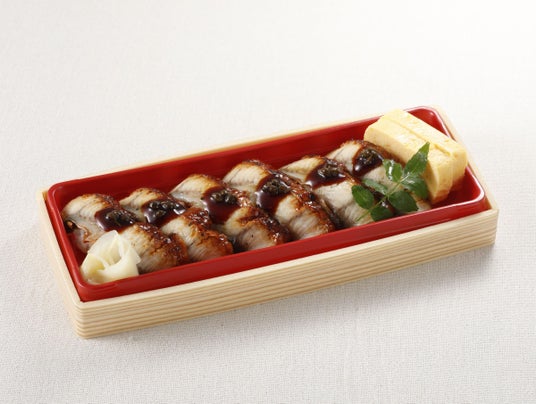 うなぎにぎり盛り 1,980円(税込)にぎり6貫とだし巻玉子。