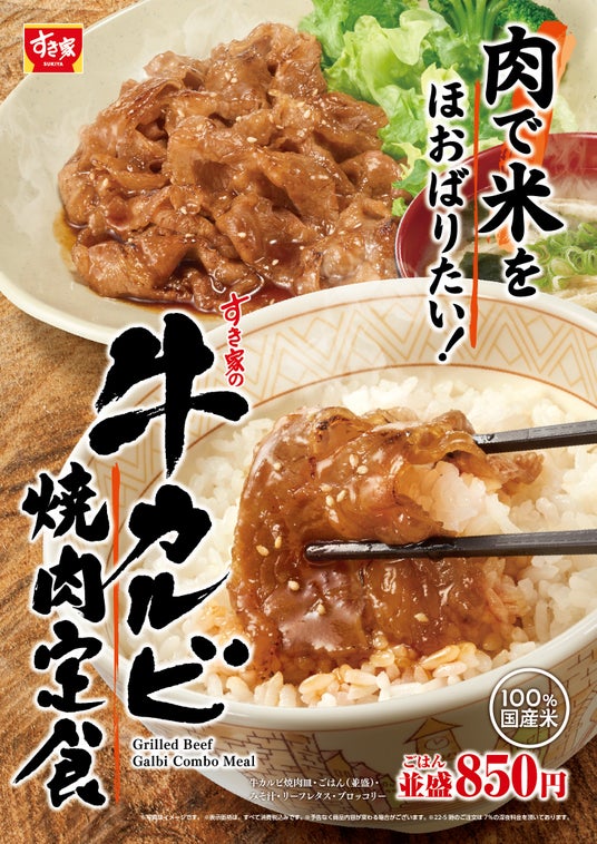 ぜひこの機会に、すき家でもお家でも、「牛カルビ焼肉定食」をお召し上がりください。
