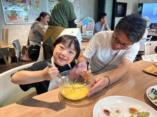 レストランでは、「野菜たっぷりドレッシング3種」と「自家製クラシックプリン」の特別メニューを提供しました。また、野菜教室では、日頃から大変好評の「マヨネーズ作り体験」を開催しました。参加した子どもたちからは「自分で作ったマヨネーズを付けて食べる野菜はいつもよりおいしい!」といった声が寄せられ、食体験の楽しさ・大切さを実感できる機会となりました。