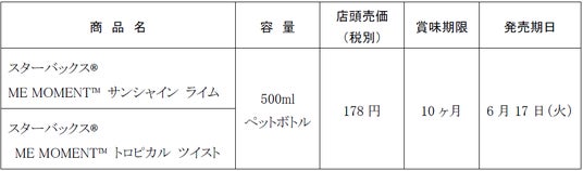 スターバックス・コーポレーション(本社:米国 シアトル、CEO:ブライアン・ニコル)と、サントリー食品インターナショナル株式会社(本社:東京都、社長:小野真紀子)は、「スターバックス(R) ME MOMENT(TM) サンシャイン ライム」と「スターバックス(R) ME MOMENT(TM) トロピカル ツイスト」を、全国のセブン-イレブン限定で6月17日(火)から発売します。