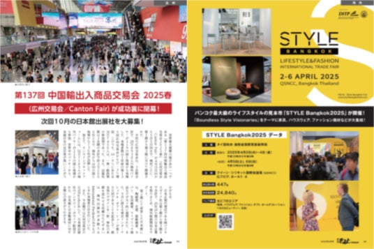 さらに、直近で開催された「STYLE Bangkok 2025」(タイ)、「第137回広州交易会」(中国)、「第40回ギフト&プレミアム・フェア」(香港)といったアジアの有力見本市レポートや、ギフト・ショーにも来場している海外バイヤーのショップ取材も収録。