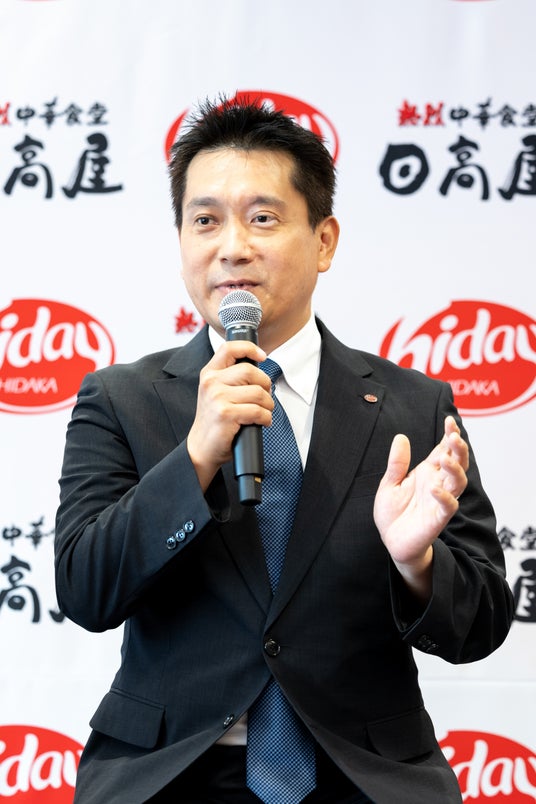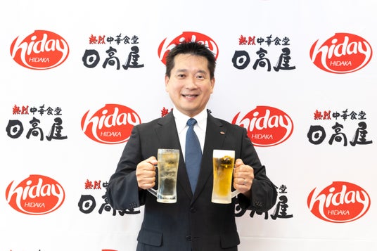 私が入った頃、ハイデイ日高の店舗はまだ19店舗の時代で、今こうしてグループ全体で456店舗*まで拡大できたことは、ひとえにお客様、そして日高屋に関係するすべての皆様のおかげと感謝の気持ちでこの場に立たせていただいております。さて、本日発表させていただく「生ビールVSハイボール祭」に関しましては、毎年恒例の大人気キャンペーンで、キリン一番搾り生ビールを、通常税込み価格390円を370円にてご提供します。「ちょい飲み」の日高屋らしく“とりあえず生ビール!!!”とご注文されるお客様がたくさんお越し頂くことを期待しております!」*店舗数は2025年6月現在のものです。