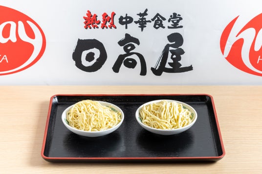 改良ポイントは、1.細麺、太麺両方に共通して、小麦の風味がアップ 2.細麺に関しては、ストレート麺に変更 3.太麺に関しては、少し太くなってもっちり感がアップなどの改良点があります。「4月のリニューアルは発表の場は設けずひっそり?!と行ったので、逆にお客様からのご指摘や感想で、改良したことを実感するスタッフもおりました。本日この場を借りて日高屋は、常においしさへの追求の手を緩めず、地道な工夫やリニューアルを行っていることも知っていただければ幸いです。お集りの皆さまには、新旧麺の食べ比べもご用意いたしました!ぜひその違いを感じてください」。