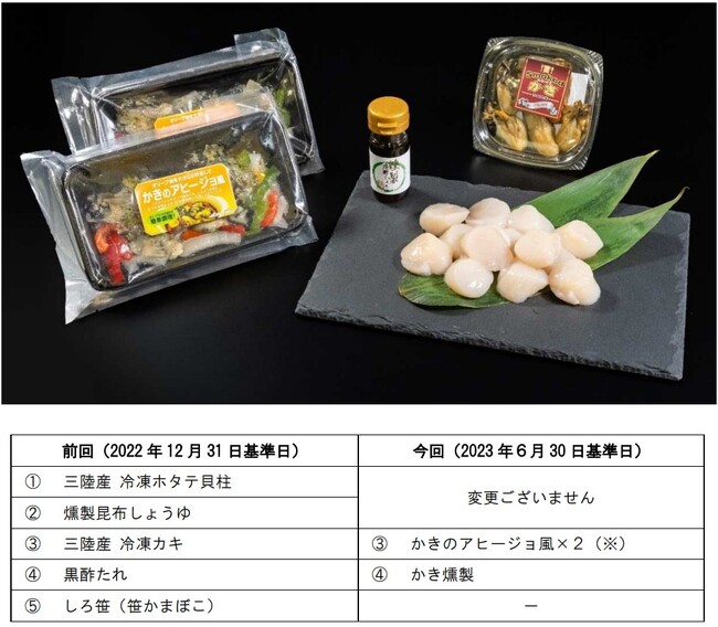 2023年6月30日基準日の株主優待では、ご好評いただいているラインナップをもとに一部を入れ替え、株主の皆様のご希望も取り入れ、さらに趣向を凝らしたセット内容といたしました。