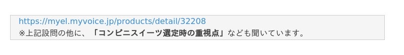 本調査のコンビニスイーツは、コンビニエンスストアの冷蔵コーナーにあるスイーツが対象です。常温の菓子、アイスクリーム・冷凍スイーツなどは除きます。 調査結果をお知らせいたします。