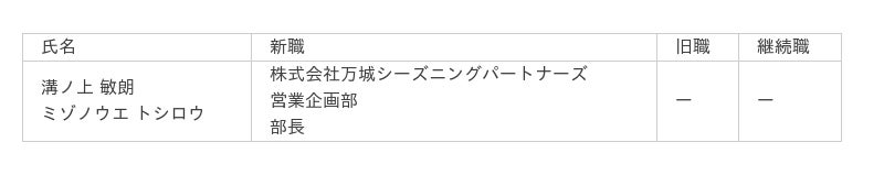 株式会社万城シーズニングパートナーズは、わさび製品を中心に香辛料・調味料を開発・製造する株式会社万城食品の一部事業を分割し、新たに設立された生鮮、CVS販路を管掌する万城食品のグループ企業です。“調味、薬味がもつ無限の可能性を拓く。生鮮食材をもっとおいしく、食卓を楽しく豊かに。”を企業理念に掲げ、加工わさび、調味料、食品の仕入れ・販売を行います。