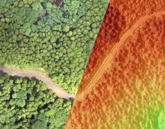 レーザドローンで取得した点群データから詳細な地形図や樹冠高データなど、 森林解析用のデータ生成を行うソフトウェアです。レーザドローンのデータから、 樹木の下の地面部分の検出、5cm解像度のDSM・DTMの作成などが可能で、林内の作業道や微地形などを確認できます。 作成したDSM・DTM・CHMデータを元にDF Scannerで解析することで、より正確な樹高や材積量の把握が可能となり、計測要件を満たすことでJクレジット創出も可能です。