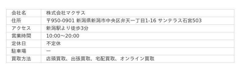 こちらの店舗は国道460号線沿い、西新発田駅より車で約4分とアクセスも良好。予約不要で無料査定に対応し、お酒買取は、ラベル剥がれや液漏れなど状態が悪いものも査定対象となります。基本的にブランデーとウイスキーの取り扱いが中心です。