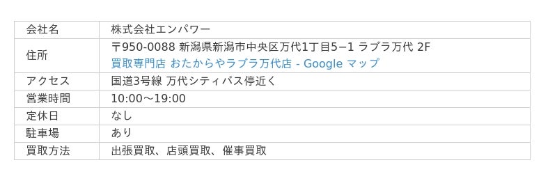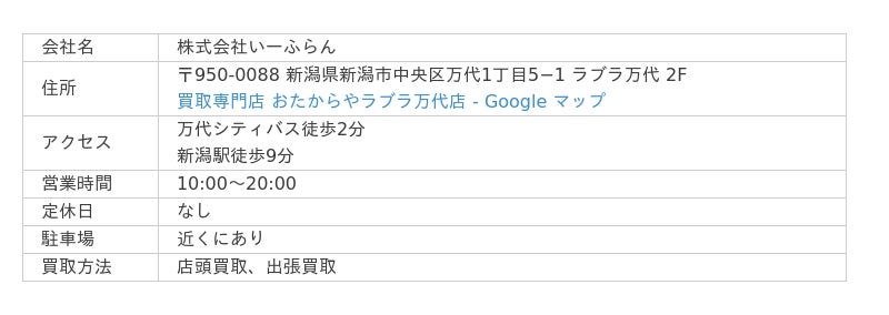 こちらは令和6年にオープンした新しい店舗で、オープン記念キャンペーンとして高価買取を実施中。場所はラブラ万代の2階で、査定は個別ブースで行われるため、プライバシーも確保されています。