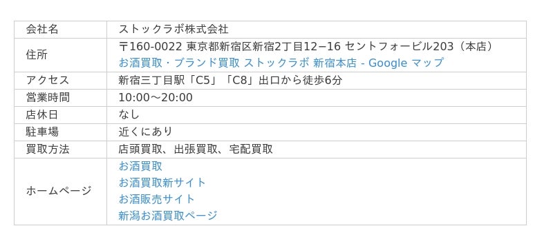 ストックラボは、関東・関西を中心に全国展開しているお酒買取店です。新潟県の方は全国対応の宅配買取を利用でき、宅配買取送料はすべて無料。希望すれば宅配キットも無料で提供してくれます。まとめ売りで買取価格がアップするお得なサービスも魅力です。