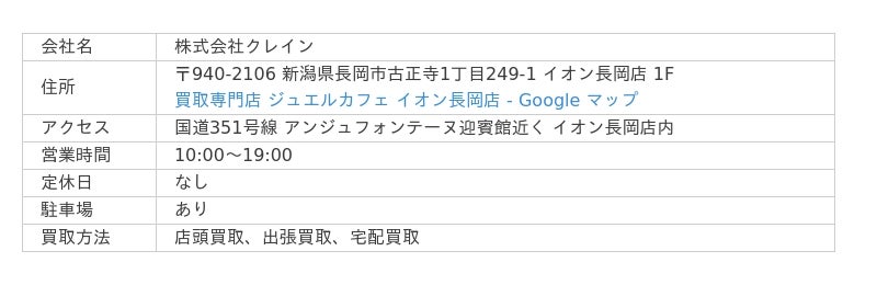 第4位:買取専門店 ジュエルカフェ イオン長岡店