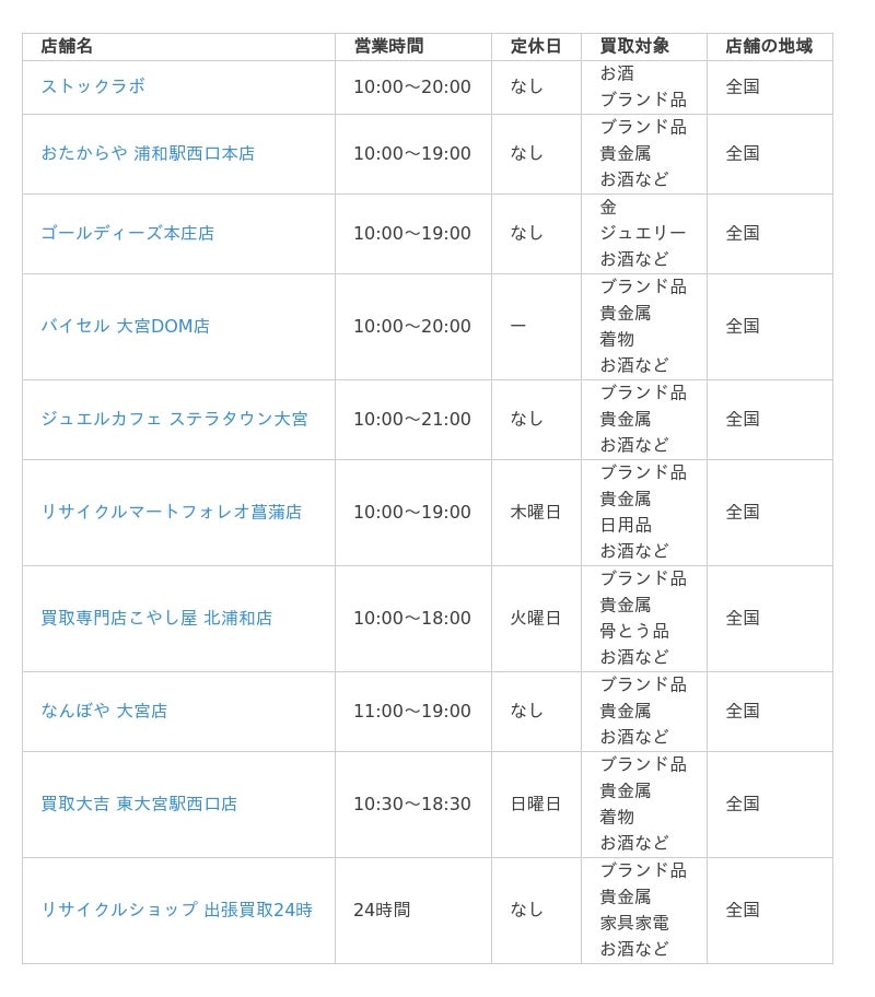 こやしやは、近年全国的に拡大している買取専門店で、貴金属やブランド品、骨董品など幅広い品目を取り扱っています。有資格者による適正な査定、新しく綺麗な店舗が多いのも魅力。浦和店は浦和駅から徒歩2分という好立地にあるので、通勤・通学の際にも気軽に立ち寄れます。