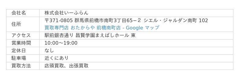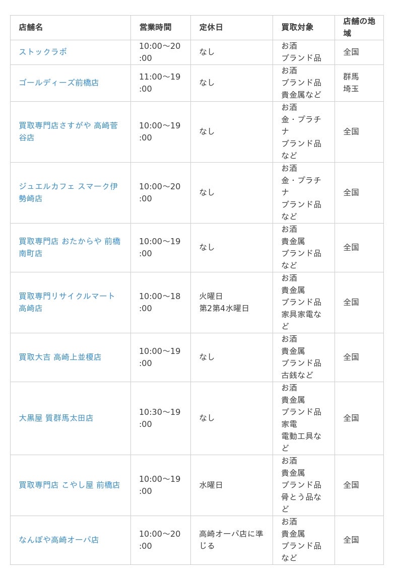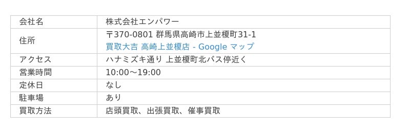 ではさっそく群馬のお酒買取店のおすすめランキングに進みましょう。まずは、以下の一覧表で業者の特徴をチェックしてください。
