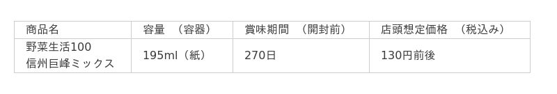 このたび発売する「野菜生活100 信州巨峰ミックス」は、力強さが十分に詰まった長野県産巨峰の味わいの野菜・果実100%ミックスジュースです。りんごやクランベリーを加えることで、フルーティーな香りと甘みを引き立て、さらに、果実のピューレを絶妙なバランスで配合することで、巨峰ならではの力強い味わいを表現しています。