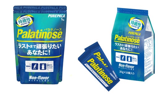 DM三井製糖が40年にわたり研究・開発する「パラチノース(R)」は植物(てん菜)由来で、はちみつにも含まれる天然の糖質です。砂糖と同じくブドウ糖と果糖がつながった二糖類で、エネルギー量も同じ(1gあたり4kcal)ですが、吸収スピードが砂糖の約5分の1という特性をもっています。その特性から、パラチノース(R)は持久系スポーツに適したエネルギー源といわれ、科学的な知見からアスリートのパフォーマンスアップに貢献できます。このパラチノース(R)原料を100%配合した商品「ピュアパラ」はロードバイクやマラソンといった持久系スポーツ選手や、トレーニーに愛飲いただいています。