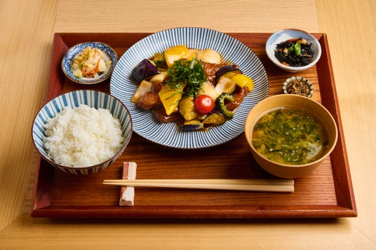 旬の夏野菜である、なす、ゴーヤー、パプリカ。玉ねぎ、ミニトマトを使用した贅沢な定食。中華の酢豚とはひと味違う”和風甘酢餡”を使った夏らしい定食をぜひお楽しみください。