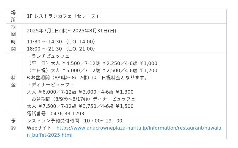 - ブルーシール食べ放題トロピカル・ハワイアンビュッフェ内のイベントとなります。