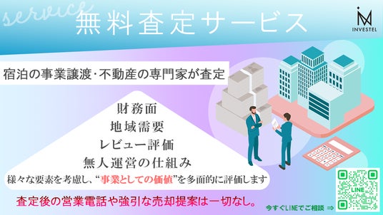 宿泊施設専門のM&A・不動産売買プラットフォーム「INVESTEL(インベステル)」は、2025年6月より民泊施設オーナー様を対象とした「無料簡易査定サービス」を実施いたします。