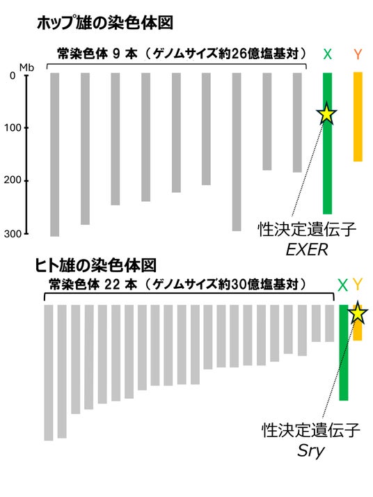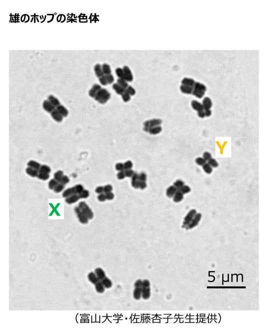これまで、ホップの性決定においては、「XA型」と呼ばれるシステムが存在することが知られていました。ヒトの性決定は「XY型」システムで、性を決定する遺伝子はY染色体に存在しますが、この「XA型」システムはX染色体に存在する点が特徴です。2014年にサントリーグローバルイノベーションセンター(株)を中心とした当時の研究チームが雌のホップの全DNA配列情報(ゲノム)を解読し発表※しましたが、当時の解析技術による限界と、片方の性のみのゲノム情報では、その詳細なメカニズムはこれまで解明されていませんでした。