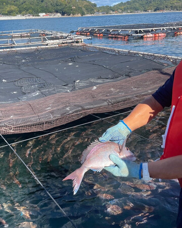 20年かけて開発した餌で育った、天然物に負けない鯛。まず海から綺麗にし、珊瑚が溢れるところで泳いでいます。もっちりとした歯応えある食感で、鯛独特の臭みが全くなく、特に脂が甘いのが特徴です。