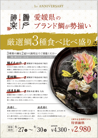 飯田橋・神楽坂エリア(東西線 飯田橋駅 B3出口 徒歩3分)に2022年に6月にオープンした「瀬戸神楽~SETO KAGURA~」(株式会社エターナルウィング)が今月で1周年を迎えます。オープン当初から掲げてきましたテーマ “全ての料理に愛媛県産の鯛を使用する” “鯛料理を定義する” のもと多くのファンの方々にご愛顧いただいております。