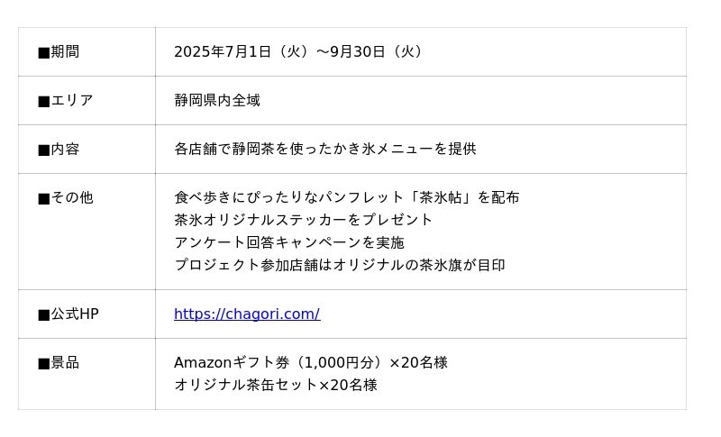 静岡県中部の観光地域づくりに取り組む、公益財団法人するが企画観光局(静岡市)が手がける「茶氷(ちゃごおり)プロジェクト」。茶処・静岡の魅力を「かき氷」というかたちで伝える夏の恒例企画です。2025年も、7月1日からスタートします!