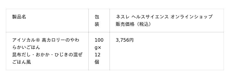 ネスレ ヘルスサイエンスは、「アイソカル(R) 高カロリーのやわらかいごはん」をはじめとする製品を通じて、高齢の方や介護が必要な方、そしてそのご家族や介助者の皆さまの“毎日の食べること”をサポートし、栄養補給と健康維持に貢献します。